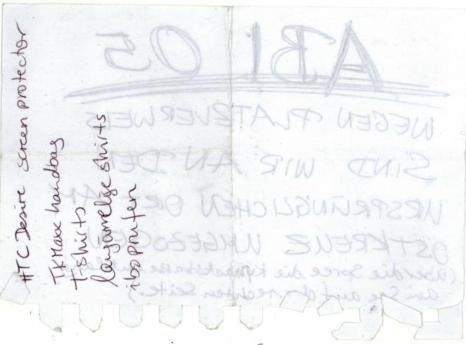 Ich weiß natürlich nicht, ob es Überlebende gibt. Und bisher überlebten nur Küchenschaben - sind sie die ORGANISATION ? Würde gut passen: die Zusammenarbeit mit der Stadtreinigung. Immerhin beobachten wir, dass die Werbekampagnen intelligent und allemal witziger sind, als die der Finanzbranche. Na ja, sie haben sich Verstärkung geholt: MacGyver. Jedenfalls fand ich diesen vermeintlichen Einkaufszettel von ihm. Wie ich darauf komme ? Na, zum Beispiel Toilettenpapier, damit hat er mal unter der Gefängnistür etwas hervorgeholt; eine Anzahl von basischen Stoffen wie Geschirrreiniger, Treibgasflaschen in Form von Deodorant, Brandbeschleuniger getarnt als Rasierwasser. Dann die Endbevoratung: Zahnpasta, Kartoffeln, Milch, Tomaten, Kavier - hmm, tja vornehm geht die Welt zugrunde. Schließlich : die Festplatte - besteht hier noch der geringste Zweifel ? Mittlerweile verkaufen die Elektronikläden externe Festplatte zu diesen Preisen mit 1 Terabyte und mehr, wenn wir das zur Basis 2 hoch potenzieren. Auch hier der nur für den Fachmann augenfälligen Hinweis : Nimm lieber die 2 TB Platte für 20 € mehr.
