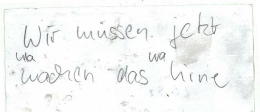 Es müssen Dutzende sein. Sind es redundante Informationen, die mittels Mittelsmännern über verschiedene Wege transportiert werden sollten ? Nein, jede Karte enthält andere Worte, Nummern und Symbole. Denkbar ist, dass es sich um ein Codebuch handelt. Dafür sprechen die eineindeutigen Zahlen auf der Vorderseite, aber auch die Technik, wasserlösliche Tinte zu benutzen. Damals, also im Krieg, wurden Codebücher mit selbiger Tinte auf sogar löslichen Papier gedruckt und in die See geworfen, bevor der Feind das Boot entern konnte. In der Eile war es mir nur möglich, einige wenige Karteikarten zu retten. Zudem fühlte ich mich beobachtet. Im Nachhinein betrachtet, denke ich, dass die Übermittlung fehlschlug. Ist der Mann aus der Bahn vielleicht nicht mehr unter uns ? Und wenn, dann gar 1,50 m tief ?